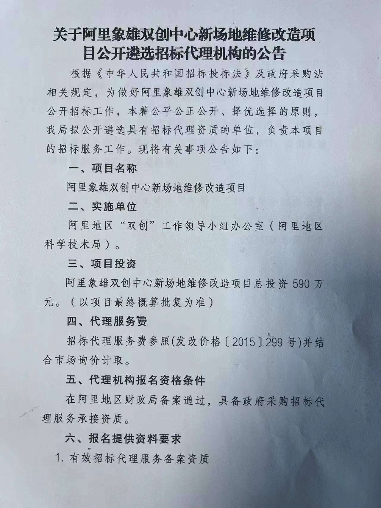 关于买球网官方网页版象雄双创中心新场地维修改造项目公开遴选招标代理机构的公告-买球体育官方网站